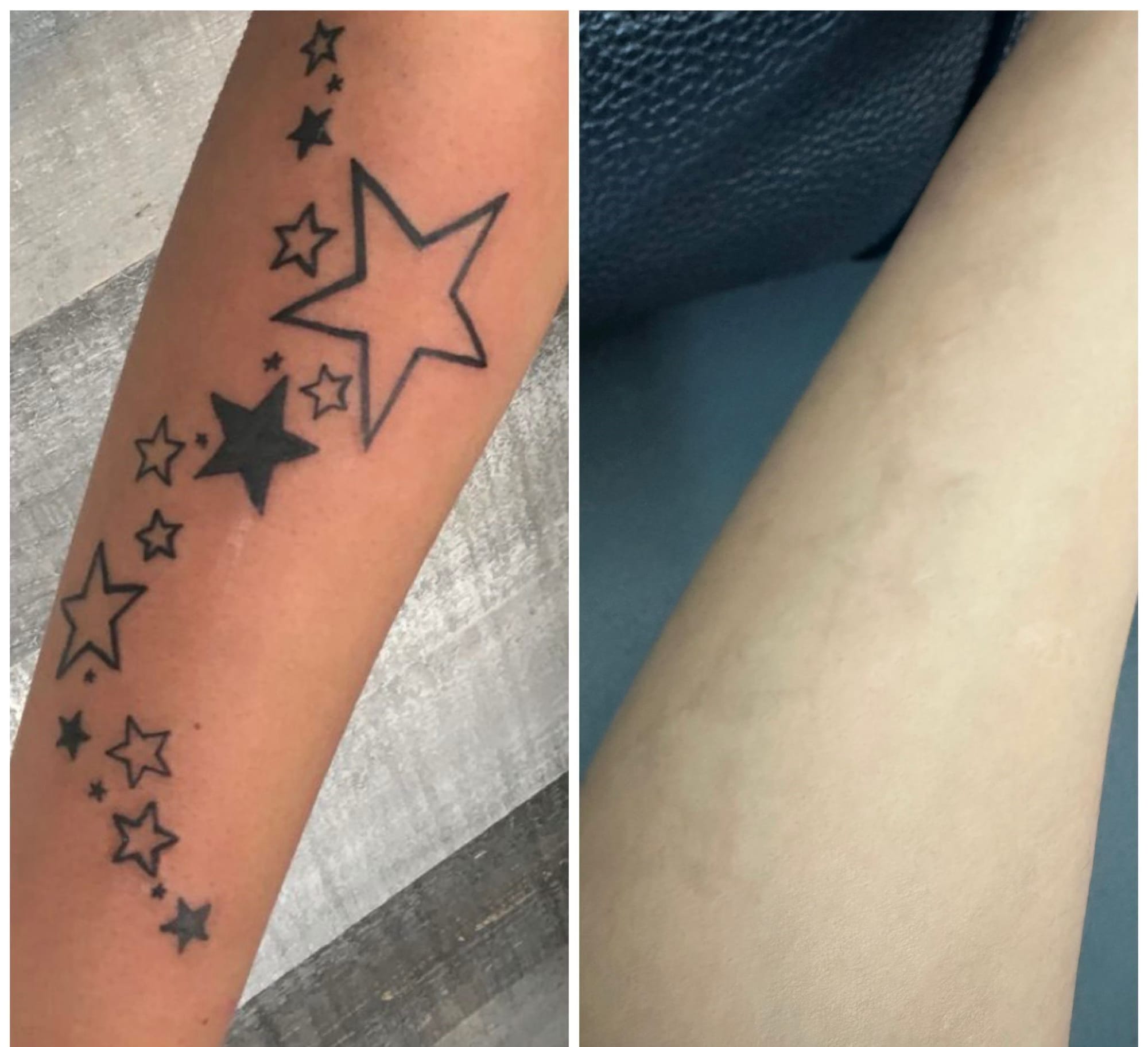 Dövme silme işlemi lazer ışınları ile yapılmaktadır. Dövme silmede kullanılan lazer ışınları derinin epidermis tabakasını geçerek, dermis ve derialtı dokudaki dövme rengini veren bileşikler tarafından emilir ve bu maddelerin parçalanıp bağışıklık sistemi tarafından ortadan kaldırılmasını sağlar.